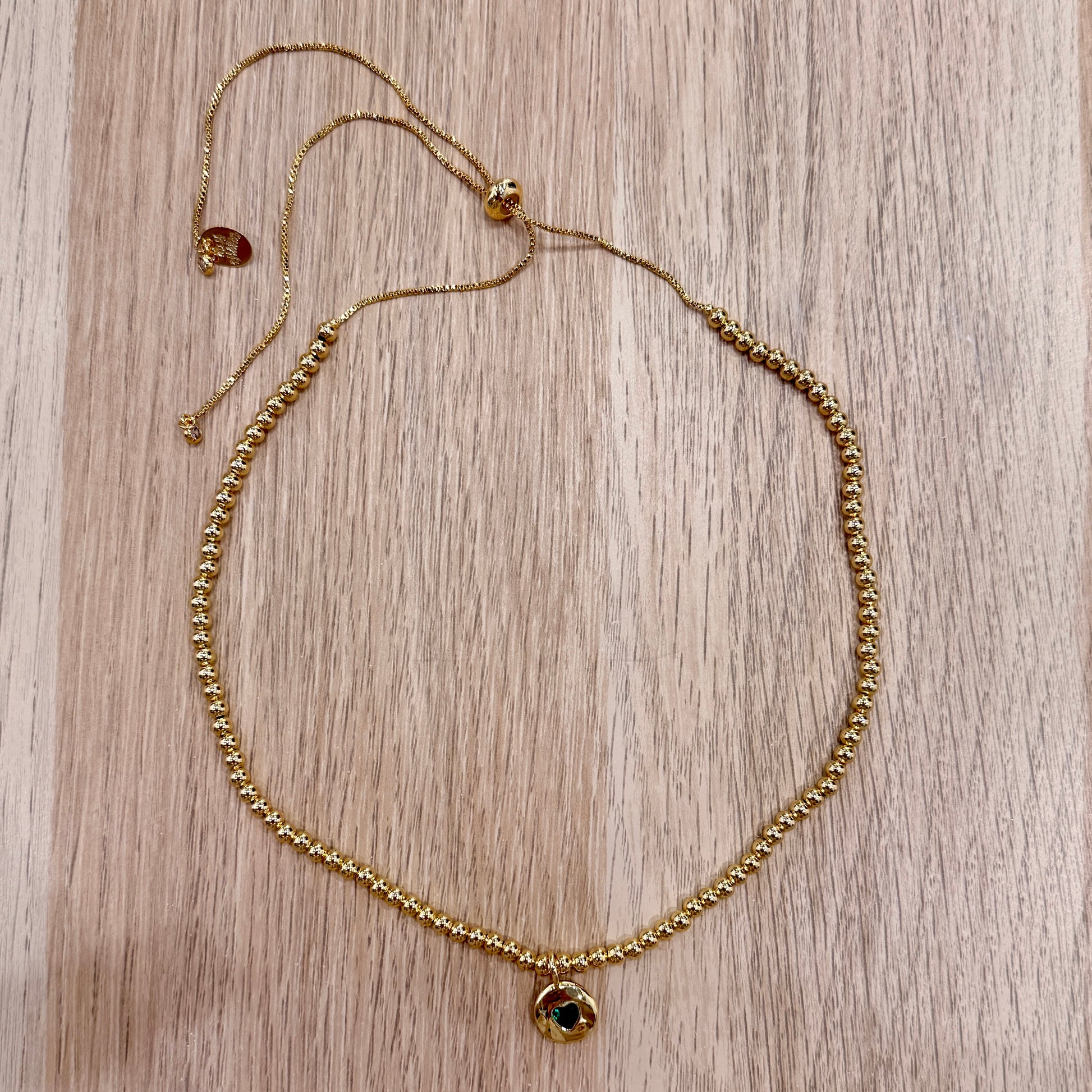 - Gold Plated 4mm ball 14k chain with Cz drop crystal heart