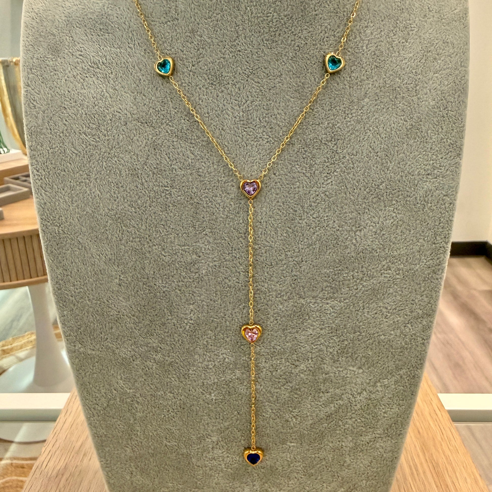 - Stainless Steel Lariat whit heart multicolor rhinestone